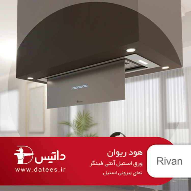 هود داتیس مدل ریوان rivan یکی از هودهای داتیس است که جدیدا وارد بازار شده است این مدل هود با ویژگی و امکانات خوبی همراه شده است که موتور آن مجهز به سیستم ایمنی و محافظ حرارتی (ترموگارد) و دارای 4 دور می باشد. از ویژگی های این مدل هود دارا بودن ریموت کنترل، استیل آنتی فینگر، بدنه از جنسی ورق گالوانیزه خودرویی ،مجهز به جک مکانیکی، سطح صدا:60 دسیبل و… است. هود ریوان جهت قرارگیری در داخل کابینت به صورت کاملا مخفی و توکار می باشد که با ظرافت خود، زیبایی را به آشپزخانه شما می بخشد.