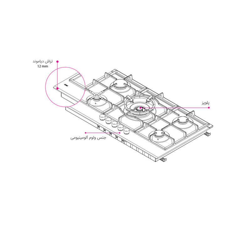 اجاق گاز صفحهای پنج شعله کن مدل لیناک B