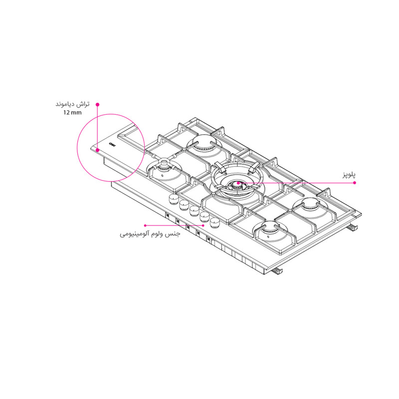 اجاق گاز صفحهای پنج شعله کن مدل لیناک B