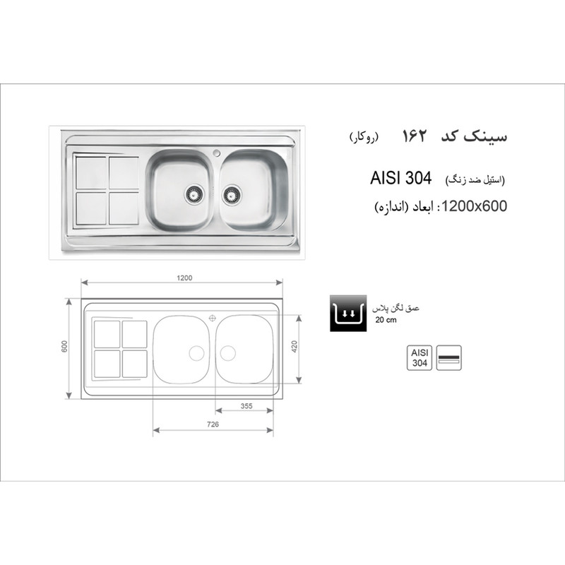 ابعاد سینک