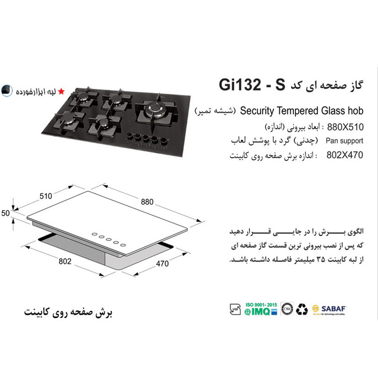- قطعات اصلی ایرانی - لبه گاز ابزار خورد - قفل و بست شعله پخش کن دارد